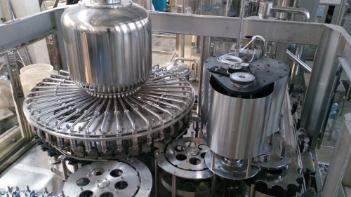 3.Filling Machine: The filling machine is one of the core equipment in the production line, used to quantitatively fill purified water into bottles. According to the degree of automation, filling machines can be divided into rotary type and linear type; according to the filling principle, they can be classified as gravity type, pressure type and vacuum type, etc. For pure water, the common practice is to use atmospheric pressure gravity filling, where the liquid flows into the bottle due to its own weight; for carbonated mineral water, equal pressure filling is required to prevent carbon dioxide from escaping. Advanced filling machines usually are equipped with high-precision flow meters or liquid level sensors to ensure the accurate filling volume of each bottle. At the same time, the filling machine also has an automatic rinsing function, which can rinse the inside of the bottle before filling to ensure the cleanliness of the filling environment.